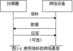 在使用信标的网络中,当设备希望传输数据到协调器时,它首先监听网络信标。在监听到信标以后,设备将与超帧结构保持同步。在适当的时候,设备使用时隙CSMA-CA机制向协调器发送数据帧。协调器成功接收后,可发送一个可选应答帧予以应答,最后完成整个过程,如图1-6所示。