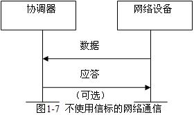 当设备在非信标的网络中传输数据时,它采用非时隙CSMA-CA接入机制向协调器传输数据。协调器成功接收后,可发送一个可选应答帧予以应答,整个过程完成如图1-7所示。
